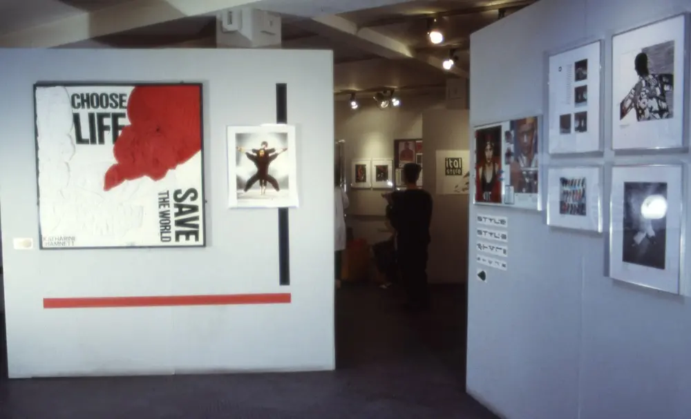 Another development in commercial photography in the Eighties, especially in fashion work, has been the collaboration of the photographer and stylist. Ray Petri and Caroline Baker (stylists) have worked with Jamie Morgan and Robert Erdman (photographers) to create fashion spreads which are not only influential on ‘street fashion’ but have also dictated the look of models over the past few years. However, much of the photography in the magazine relies heavily on influences form the past. Sixties photographers Terence Donovan and David Bailey spring readily to mind… and yet, when the photographs are placed in a magazine format, the stylish design and layout changes the way in which the are viewed. The exhibition attempts to show something of this dichotomy.