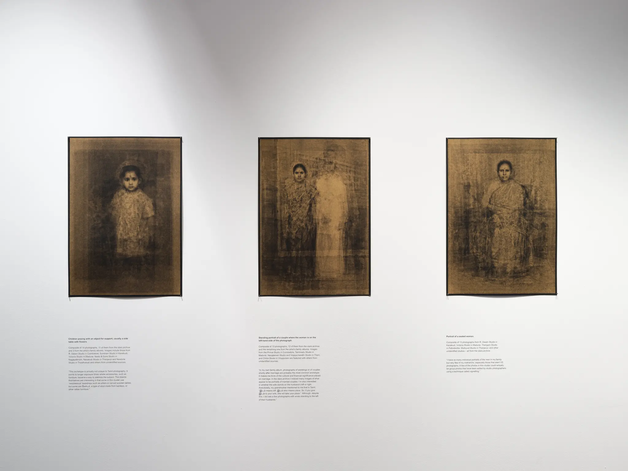 At the centre of the wall a video includes oral interviews with family members reflecting on the diasporic identity. Stars.archive researchers also share insights on the particularities of eastern studio archives and family albums in relation to a more western view.