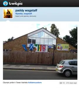 #citizencurators is a Twitter project which documents the way Londoners responded to the Olympics of 2012. It aims to show how the contemporary history of London2012 could be recorded by the people who experienced it without the filtering of an institution.