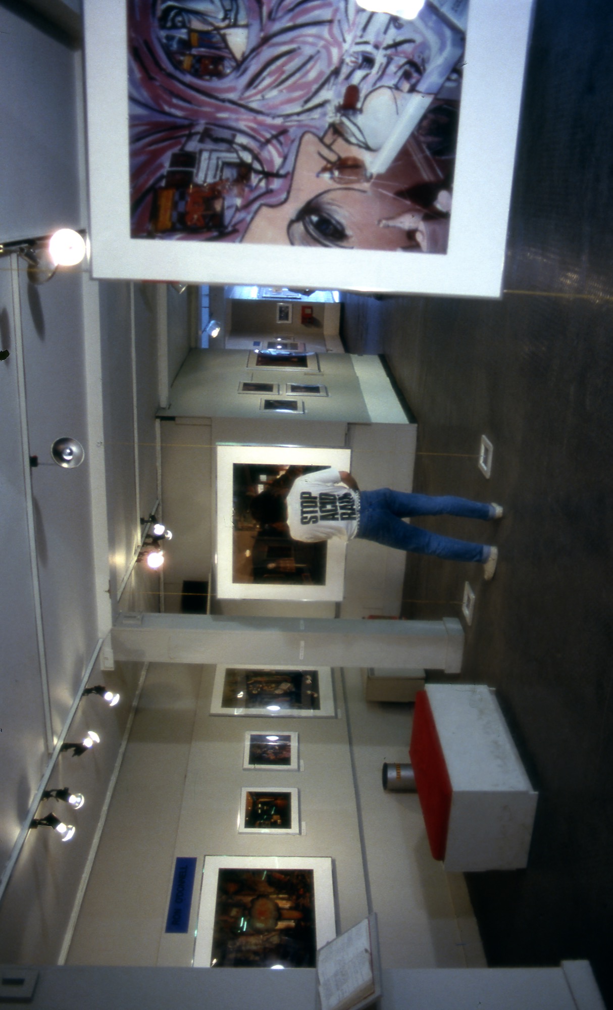 O'Donnell's photographs, taken since l984, have a humorous edge. He uses devices from comic strips, cartoons and even Spitting Images. His recent photographs are more satirical. Doc Doc Document is a parody on documentary photography, while Tactical Nuclear Explosion, The Discovery of Radium and Keep The Radio Tuned For Government Advice And Instruction deal with the nuclear threat. O'Donnell admits to being largely unconscious of any political motivations. However, the model doll usherette in Odeon 2 bears an uncanny resemblance to Mrs Thatcher and new technology's presence, in the guise of the many situational robots found in his work, bear testament to his concerns with current issues. O'Donnell is not a documentary photographer per se but his multi-layered visual narratives present us with many forms of evidence as entertainment.