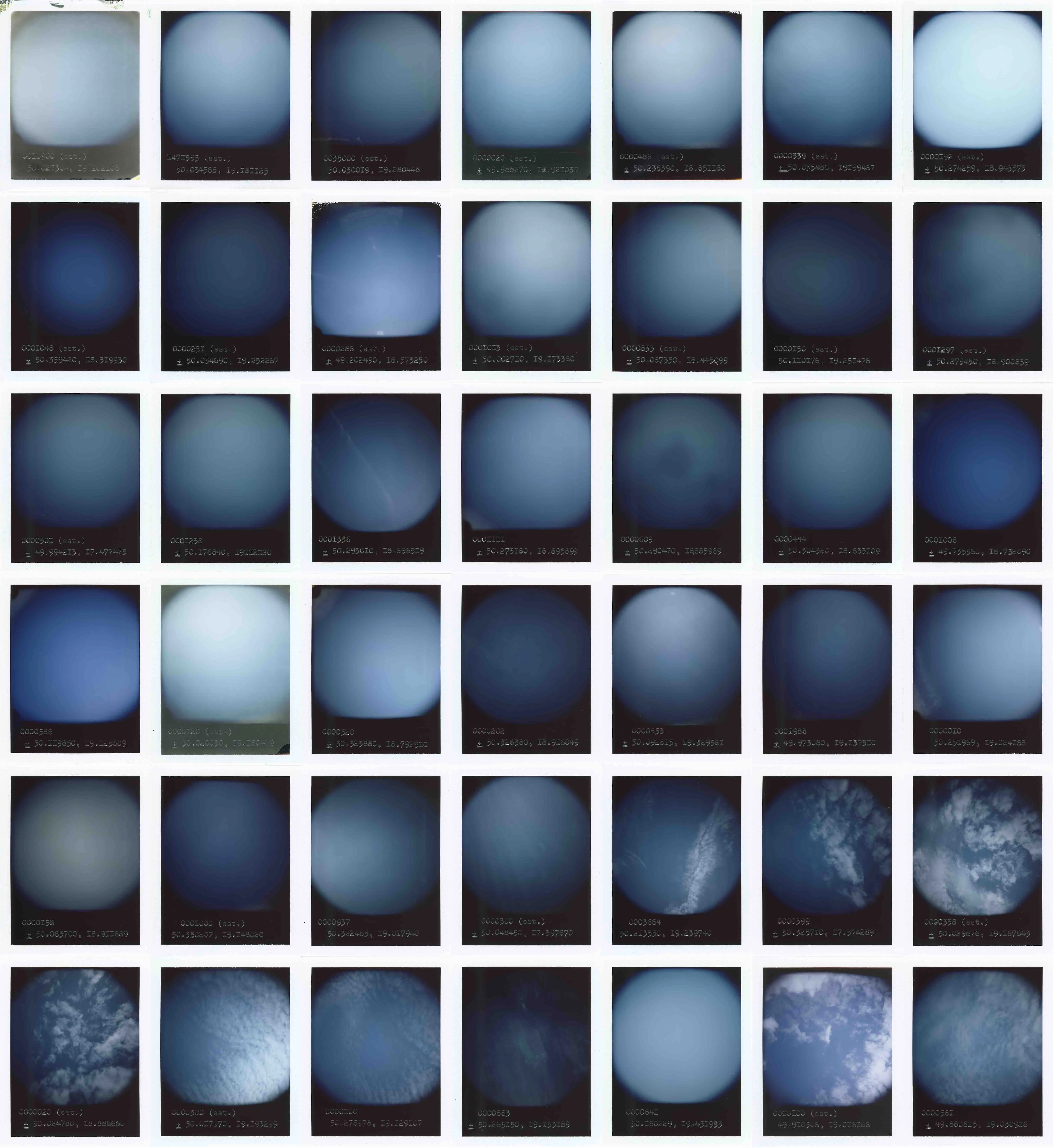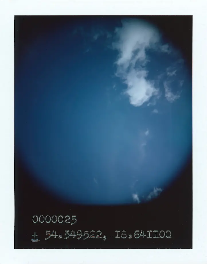 The first encounter on the 5th floor is with Anton Kusters' The Blue Skies Project, which was exhibited at Fitzrovia Chapel, London (15–19 May 2019) and curated by Monica Allende. The work offers a visual response to violence, trauma and memory and contains 1,078 polaroid images, all showing an upward view of a blue sky shot at the last known location of every former Nazi run concentration and extermination camp across Europe from 1933 to 1945.