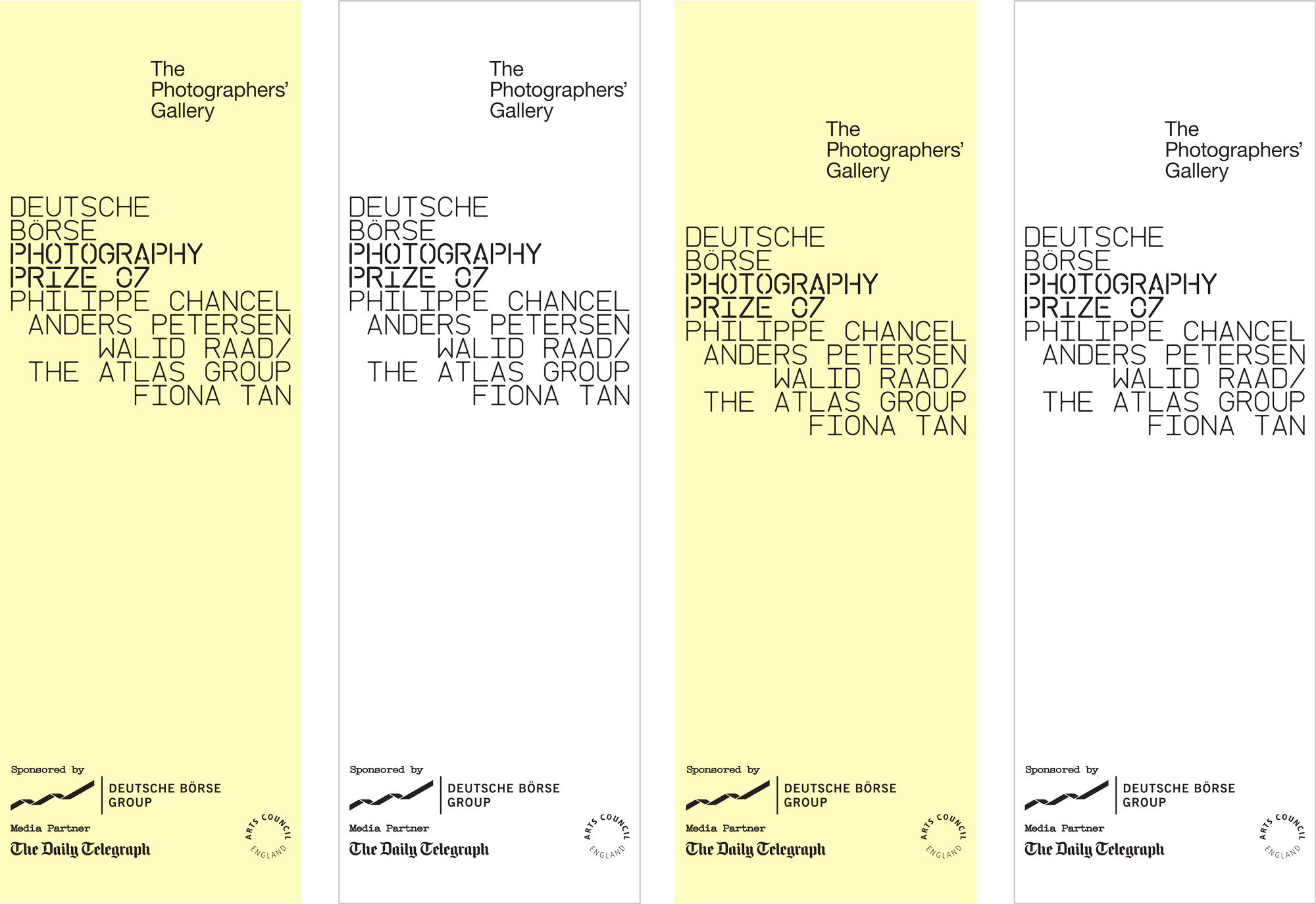 The shortlisted photographers are: Philippe Chancel , Anders Petersen , Fiona Tan and Walid Raad/The Atlas Group. The work represented ranges from photojournalism to intimate social photography and from the exploration of the complexity of culture and place to the documentation of contemporary history. The Deutsche Börse Photography Prize 2007 aims to reward a living photographer, of any nationality, who has made the most significant contribution to the medium of photography in Europe between 1 October 2005 – 30 September 2006. The Photographers’ Gallery continues its commitment to showcasing new talent and highlighting the best of international photographic practice with generous support from the title sponsors, Deutsche Börse Group. The Prize continues as one of the most prominent exhibitions at The Photographers’ Gallery and is amongst the most prestigious international arts awards. Nominations have been made by the Academy, a group of 75 experts invited by The Photographers’ Gallery and representing photography institutions throughout Europe. These nominations were for a significant exhibition or publication and the final shortlist was made by the Jury and chaired by Brett Rogers, Director of The Photographers’ Gallery.