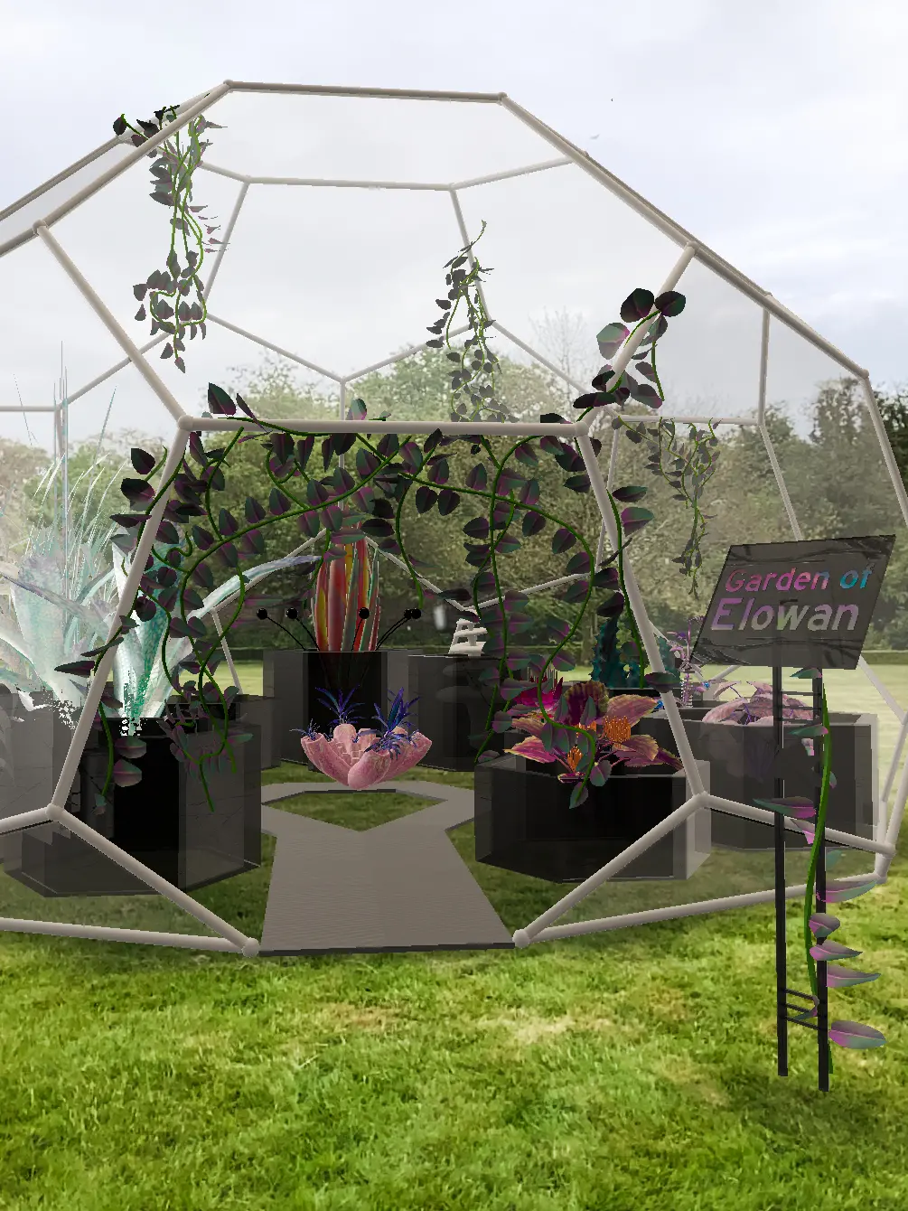 Garden of Elowan is home to a collection of speculative plant species in the form of an immersive AR greenhouse. The virtual installation imagines a not-so-distant future in which the natural world has fused with digital technology, inspired by real life stories of cyborg botany and digital sentience. It’s a space for visitors to explore the fantastical realm between physical and digital existence and ponder what life beyond Earth may one day look like.