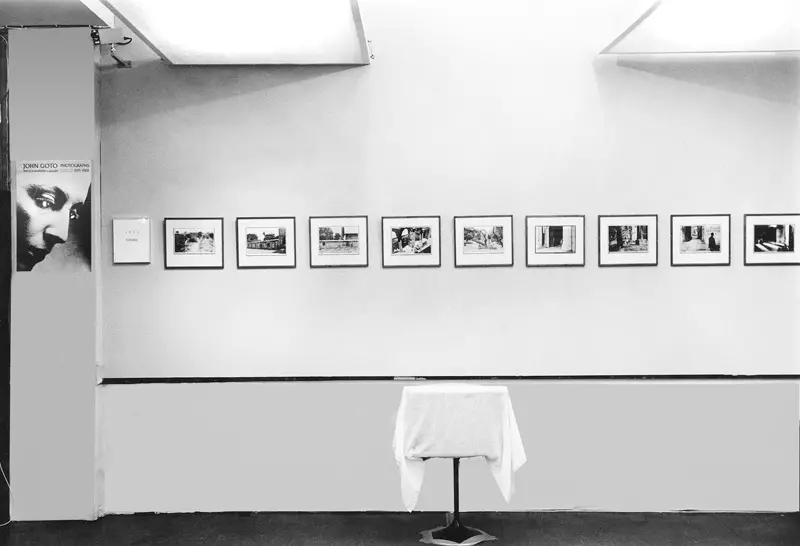 In this, Goto’s first exhibition, he showed five series of photographs made over the preceding decade. With the intention of disrupting the prevailing conventions of exhibition display, he incorporated graphic and cinematic elements into the gallery presentation.