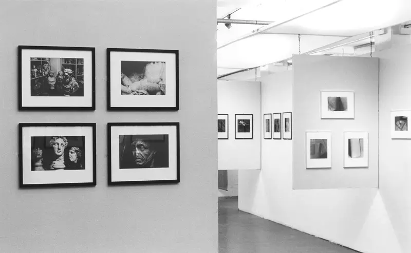 A silkscreen exhibition poster was designed by Andrzej Klimowski, with an extended essay by Craigie Horsfield on the reverse. In an attempt to bathe the space in a diffuse overall light, gauze panels were hung below the spotlighting track.
