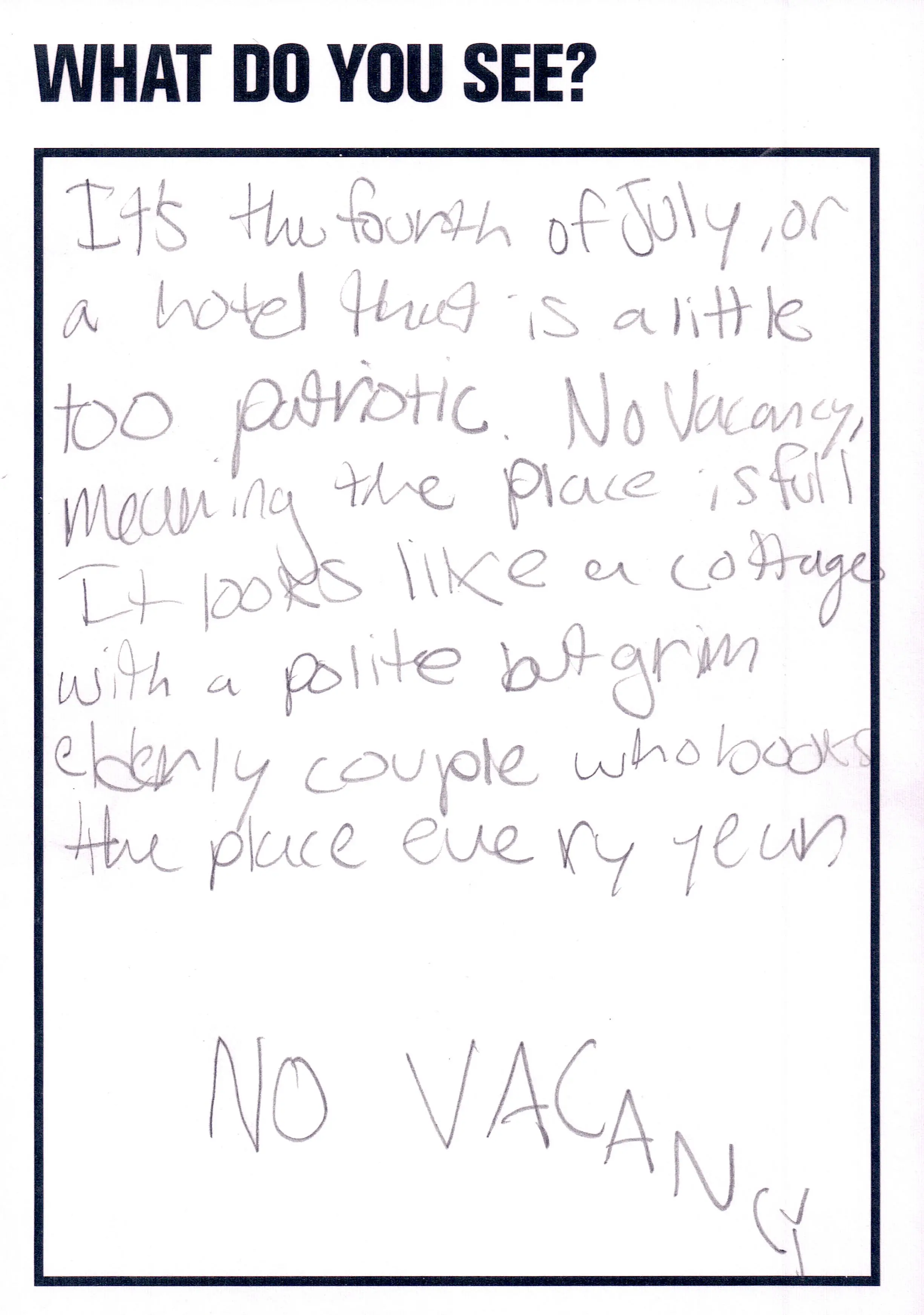 A statement from the artist about this image reads: No Vacancy is a photograph I made in California in 2012. There is no ‘evident’ computer work in the picture but I like the feeling that there might be. The phrase ‘No Vacancy’ seems to be referring as much to the image as to the motel. In this way it refutes a lot of my other work where I am interested in intervening in the space of the picture – making Photoshop act within this space, or on the objects pictured, instead of on the image.