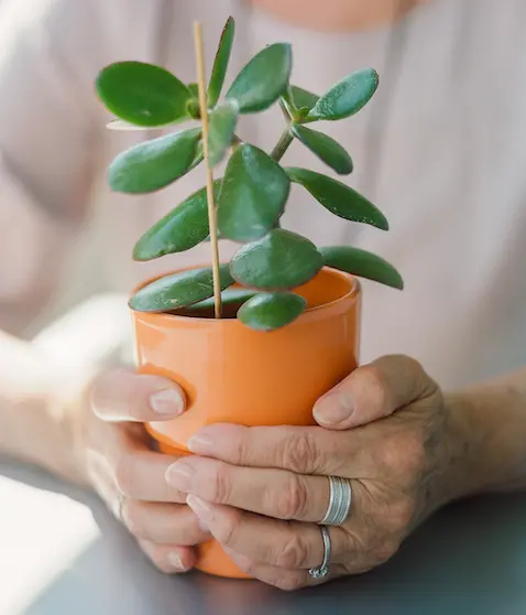 Grandmother Gertrude was taken at the end of our first shoot together in which I captured my grandmother with her boyfriend. After putting down my camera, we had coffee and chatted a bit. She told me that she had just moved a small plant sprout into a larger pot because its growing so fast. We went on the balcony and she showed me the plant. I asked if I could have it, but she told me it was not ready yet. As she sat there holding the plant offspring in her hands, I knew I had to take a picture. Like most of my work, the photo was taken on medium format film. I took this photograph pre-Covid-19 and since then it has grown a new meaning.