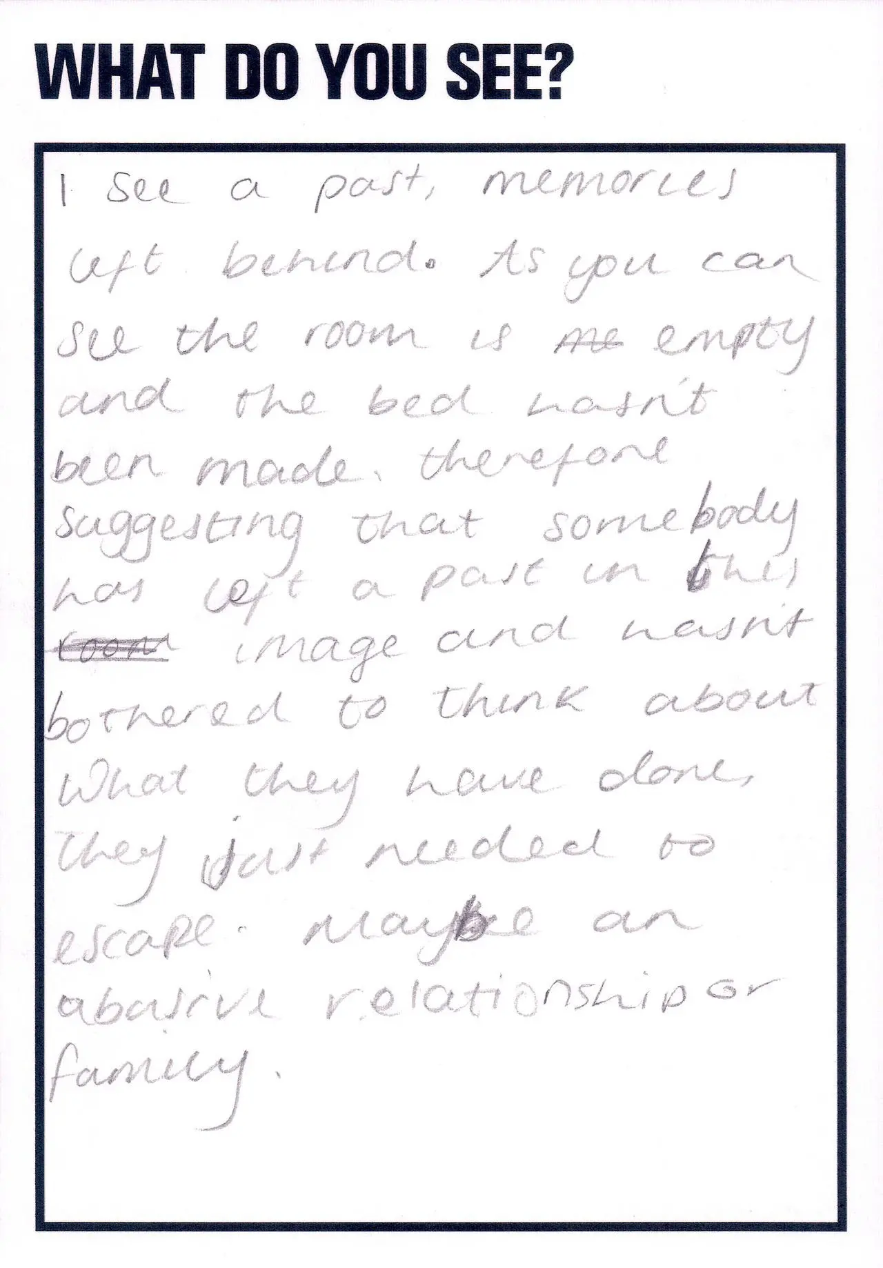 Susan Meseilas later worked with Here Press to produce a small publication, A View of a Room, featuring a selection of people's responses to the photograph when it was displayed as part of the Touchstone programme.
