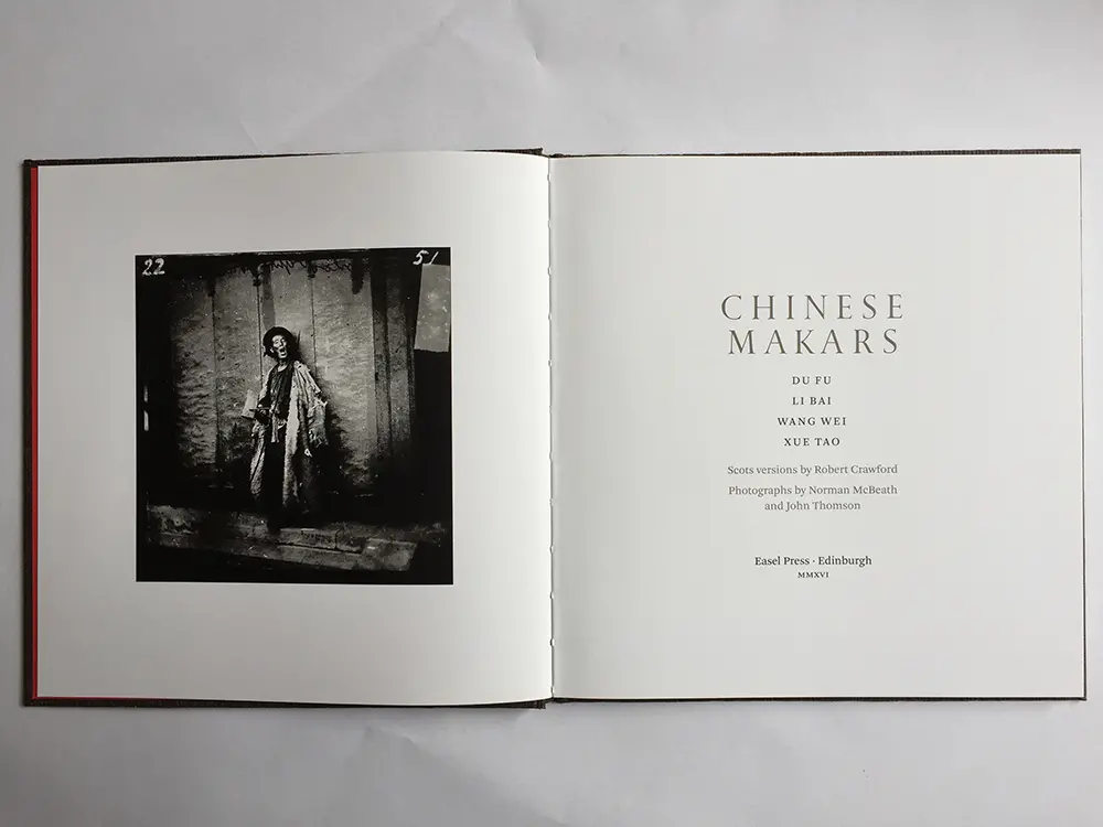 The Scots poems of Chinese Makars are printed not with the original Chinese poems but alongside English glosses which, for the reader unfamiliar with Scots, serve further to complicate the relationship between poem and photograph.
