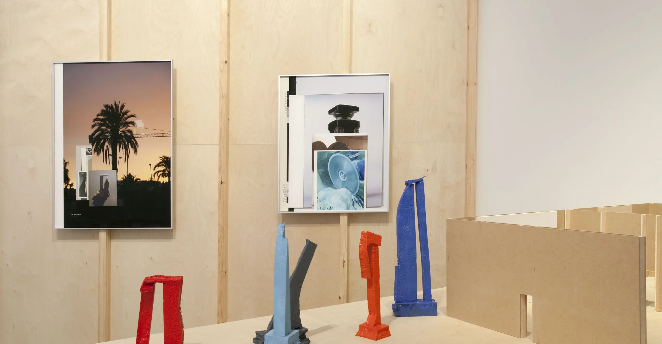 As you first walk through the exhibition the art flows through two rooms seamlessly. The first thing I noticed was the small sculptures by Alberto Feijoo which are all laid out together on a table. The sculptures had a simple structure and resembled a building to me. The abstract sculptures were bold and brightly coloured which caught my attention. The contrasting in colours like orange and blue were used to cover the whole sculpture which made them eye-catching and stands out.