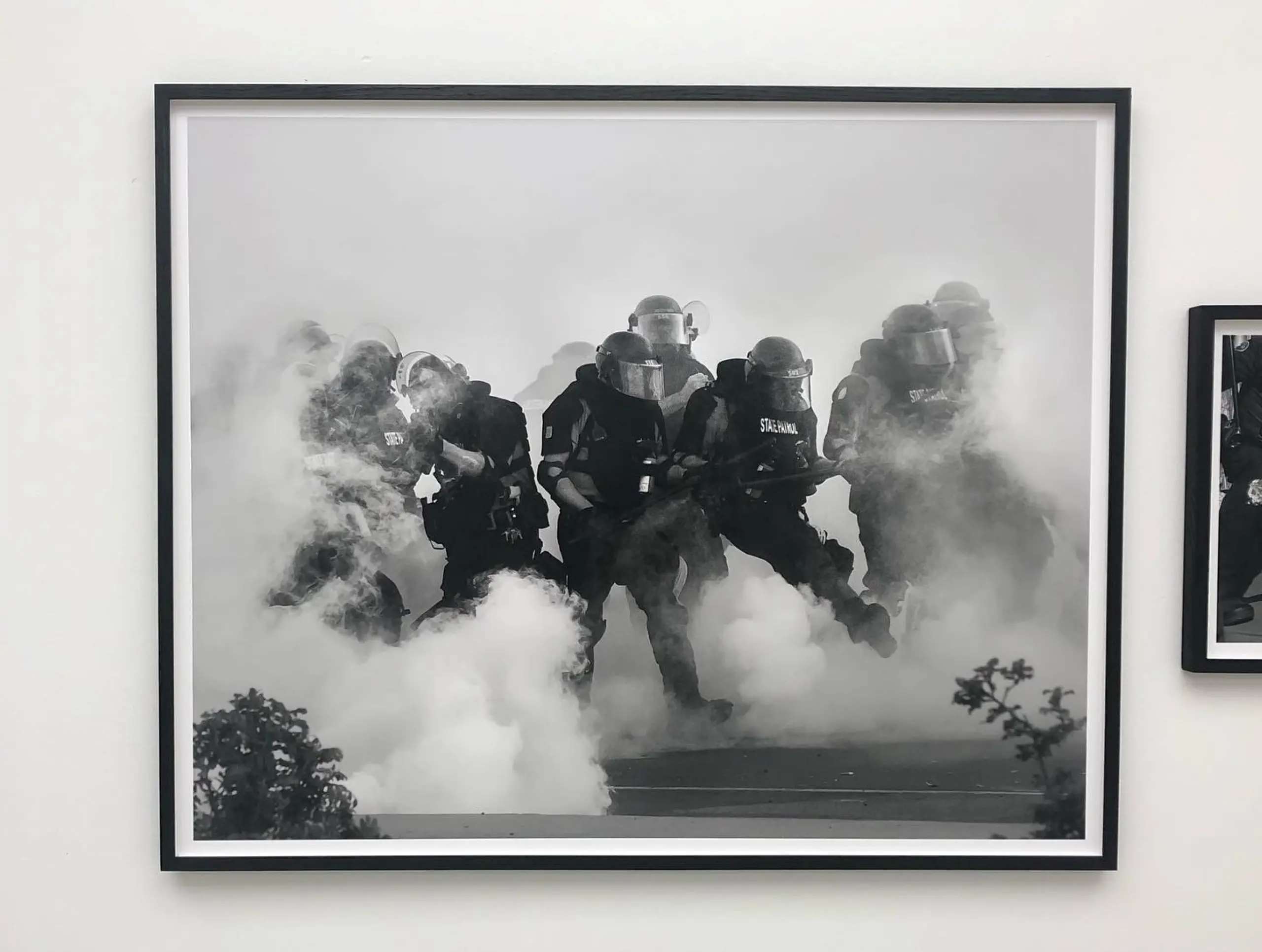 It was clear that the exhibition was carefully curated: not perfect chronological order, but arranged to provoke thought and feeling. Sheila Pree Bright’s captivating black and white photographs of Black Lives Matter protests were juxtaposed by Bruce Davidson’s photographs of the Selma March in 1965. It was as though photographs from recent years could have been taken in the ‘60s, in turn questioning the extent of change in racial justice. The images presented were powerful, and there are several that stick out; chilling images of the family of George Floyd at his funeral against an image of Trump’s rallies during the pandemic. The two photographs that stood out the most to me were Blue Velvet Chair, 2020, and Pink Sidewalk, Florida, 2017, by Anastasia Samoylova. An image of a blue chair floating in murky water with the reflection of a building was hung next to an image of a pink sidewalk where palm trees had toppled into the neighbouring buildings. These two images reflect upon the impact of rising sea levels in southern US states, and created a great sense of pictorial tension of the human created world and the natural environment.