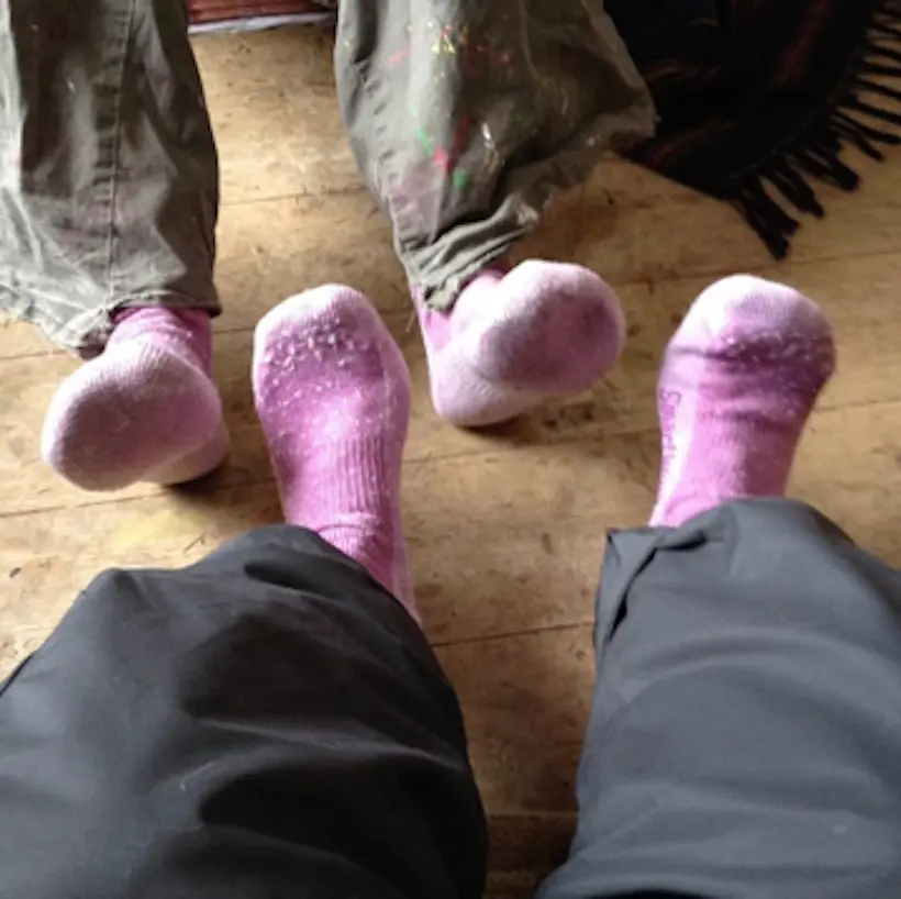 "My girlfriend was artist in residence in a hut up Glen Nevis. I visited her, the weather was bad, our shoes were muddy. We took them off and discovered we were wearing identical socks."