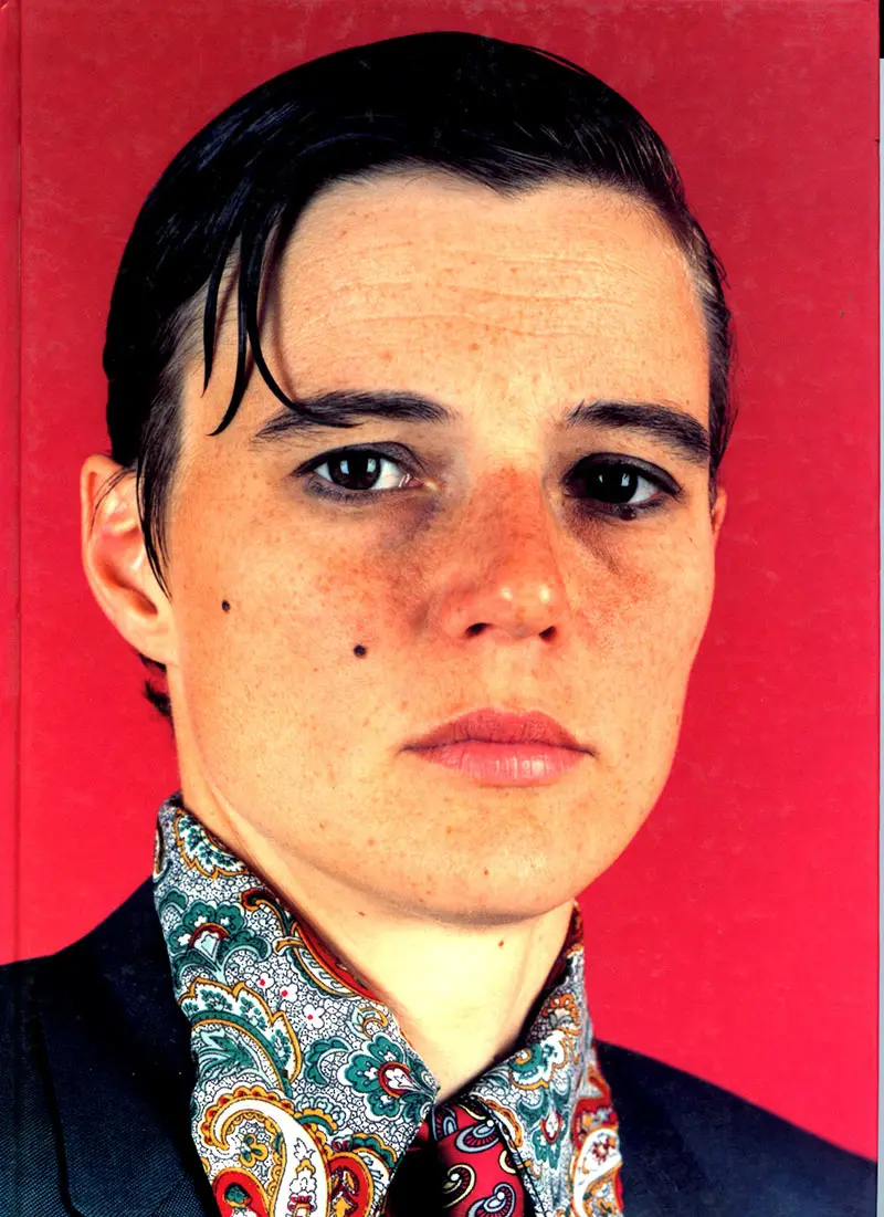 “Catherine Opie shot to prominence in the mid 1990s with a spectacular sequence of Portraits of her close friends from within Los Angles’ leather community: transvestites, female-to-male transsexuals, drag queens, body manipulators and others who pioneer the body as a site of sexual and aesthetic experimentation. Opie created a sequence of elegant, gorgeously coloured portraits which gave their subjects a regal dignity: they stare back through us instead of being the ones continually stared at. The series includes a number of self-portraits, including Bo, 1994. One of several Opie alter-egos, Bo – a butch, mustachioed, tattooed truck driver – represents a different, darker side of the artist. In other Self Portraits, Opie pushes this sense of the psychic and physical self-exploration to an extreme by subjecting her body to a series of painful manipulations. ‘I want to push the whole realm of beauty and elegance’ she says, ‘but also to make people scared out of their wits.’