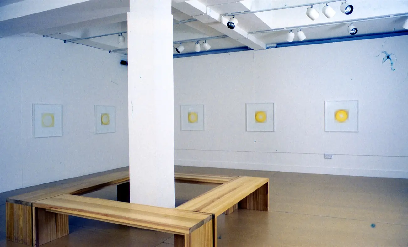 Susan Derges's Full Circle deals with metamorphosis; through a series of thirty six richly coloured prints, it follows the transformation of a cluster of frog spawn, from tadpoles to fully formed frogs. The process resembles a controlled experiment and the work appears to belong as much to the laboratory as to the artist's studio. It suggests a metaphor for the wider conditions of nature - its pattern of expansion and growth reverberating throughout our world.
