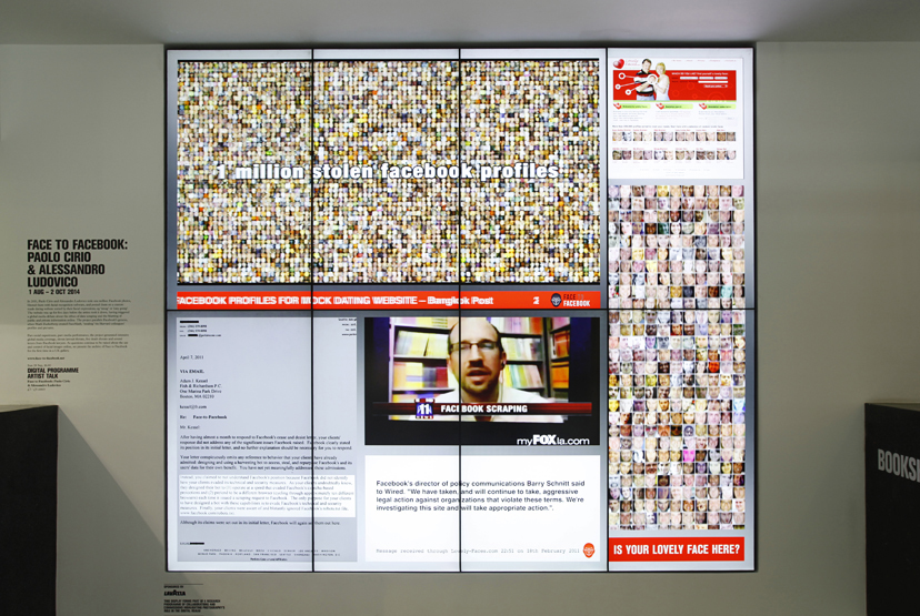 In 2011, Alessandro Ludovico and Paolo Cirio stole one million Facebook profiles, filtered them with face recognition software and posted them on face-to-facebook.net a custom made dating website, sorted by the characteristics of their facial expressions.