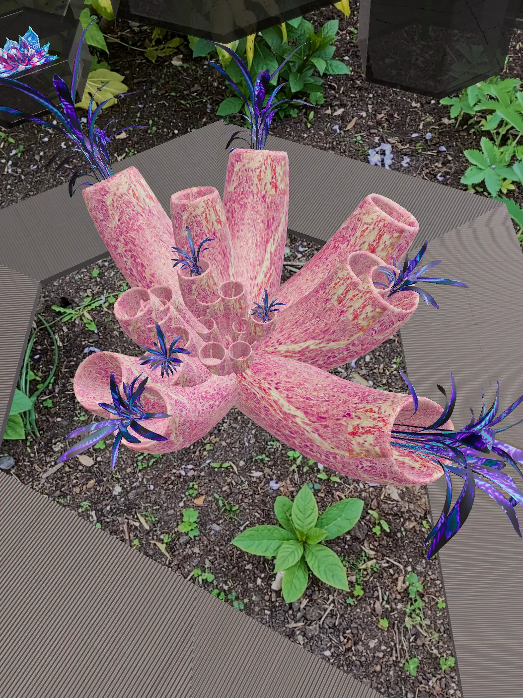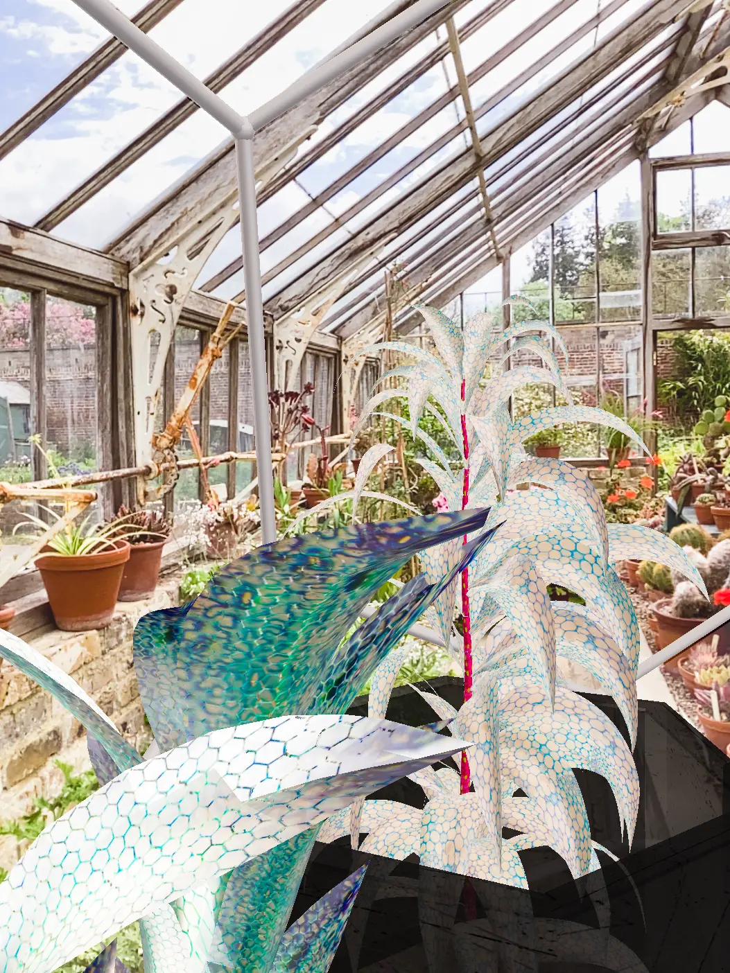 An immersive AR greenhouse created by artist Georgia Janes houses a collection of speculative plant species. The second Open Space online Augmented Reality commission.