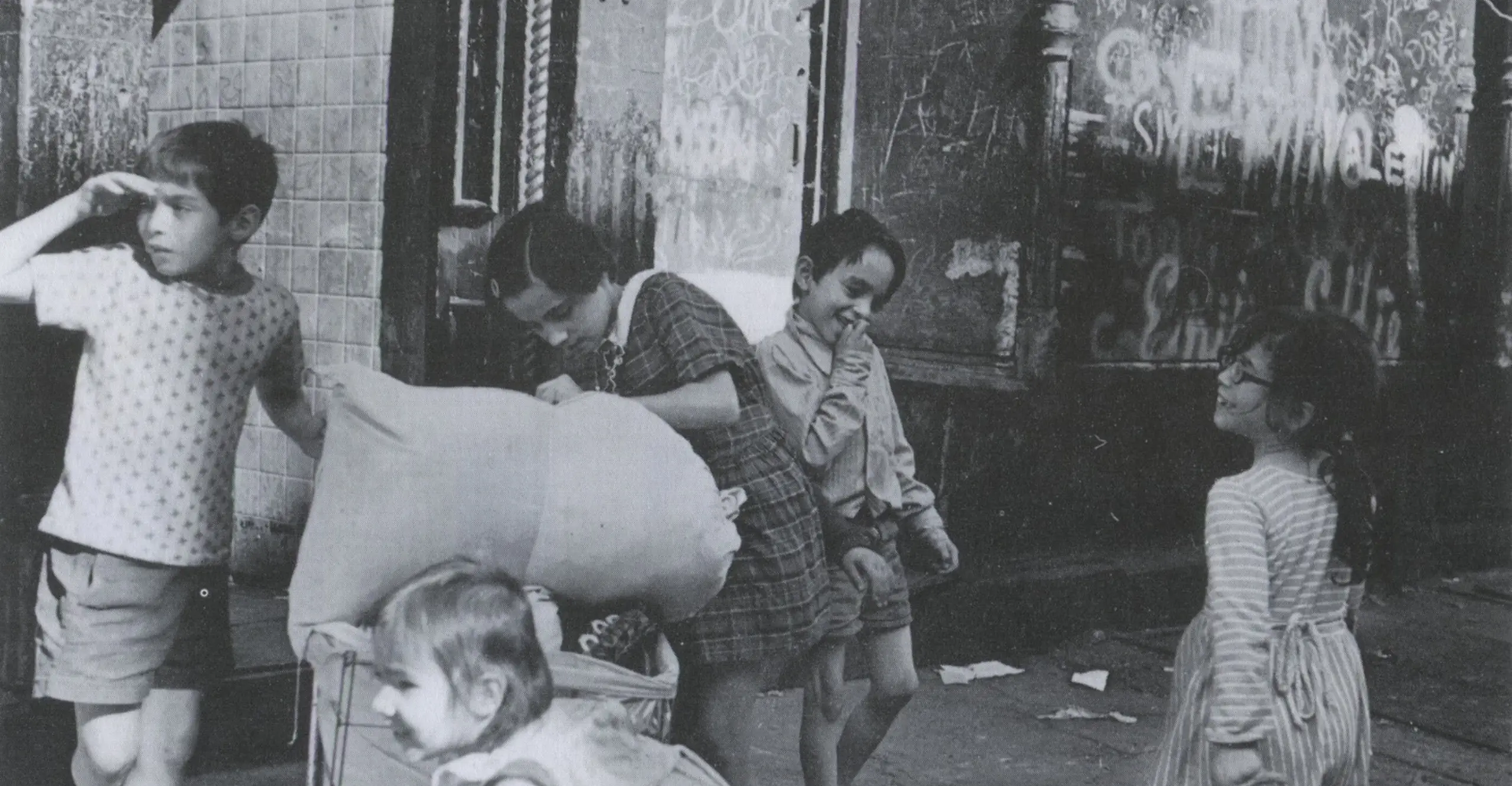Since the 30s the tone of Levitt's New York photography has been one of affirmation, an affirmation of survival in which the expressions, rituals and markings of children have played a central and symbolic role. Such an approach has been part of a wider humanist tradition and it is, not surprising that Levitt's work was included in the Family of Man exhibition of 1955. But her photographs resist the sentimental, and the bland cultural imperatives of the Family of Man, with a level of visual sophistication that constantly pulls the viewer back to issues of picture-making and photography.