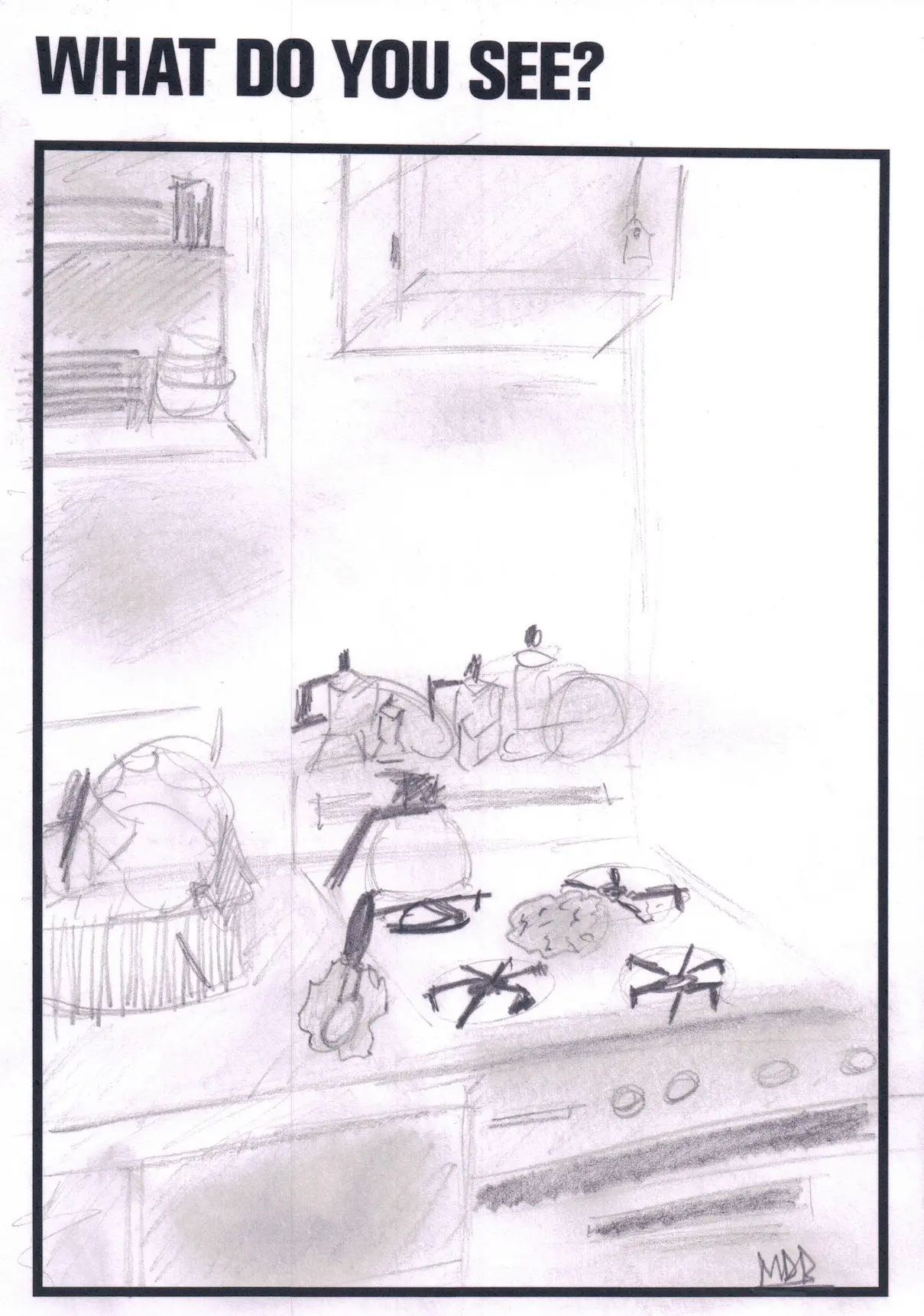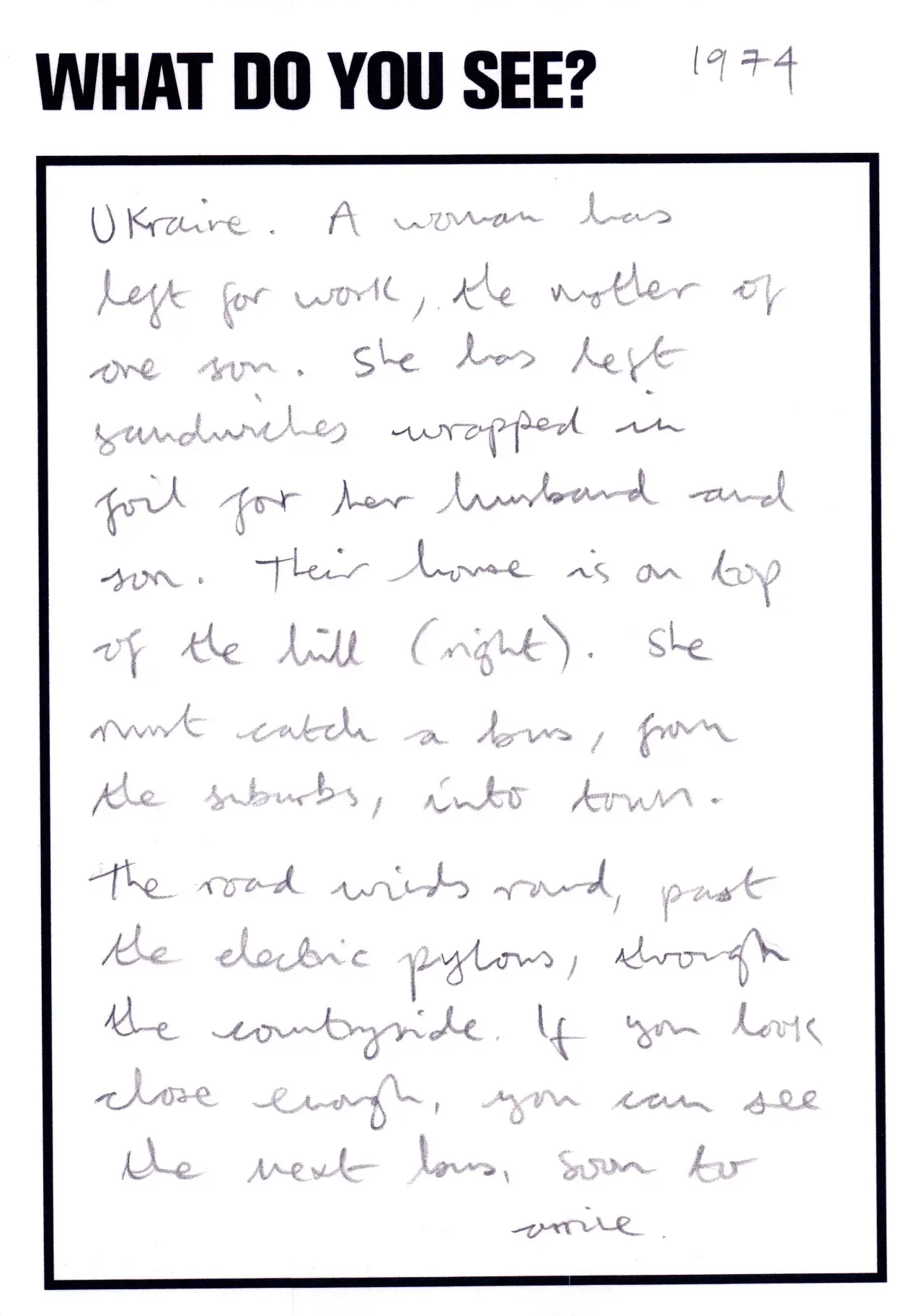 The open book featured as part of the Touchstone programme (2012-2020). Each display consisted of a single photographic work on the Eranda studio floor where visitors were invited to respond to the question 'What do you see?' using the cards and pencils provided. A bench was placed in front of the work, encouraging people to spend a little longer than they might usually. The programme was part of a wider series of projects and activities related to visual literacy.
