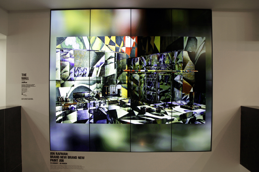 Originally disseminated in blog form, Jon Rafman’s Brand New Paint Job is a project where famous paintings are used to wallpaper amateur 3D models collected from Google 3D Warehouse. The project moves through a succession of hyper-real, lobbies, office spaces, cars and lounge rooms using a virtual camera. The resulting images reference the world of interior design magazines, 3D gaming, social media mashups and synthetic photography. Rafman will be re-working the project as BRAND NEW BRAND NEW PAINT JOB specifically for The Wall.