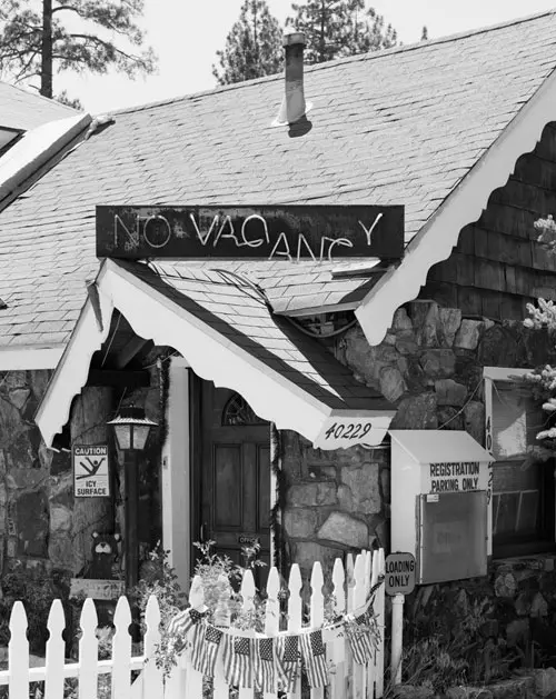 A statement from the artist about this image reads: No Vacancy is a photograph I made in California in 2012. There is no ‘evident’ computer work in the picture but I like the feeling that there might be. The phrase ‘No Vacancy’ seems to be referring as much to the image as to the motel. In this way it refutes a lot of my other work where I am interested in intervening in the space of the picture – making Photoshop act within this space, or on the objects pictured, instead of on the image.