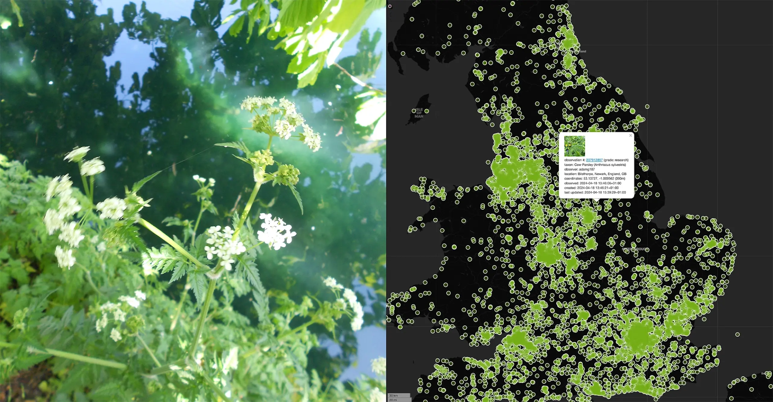 Behind the pop-ups, visitors can engage in the user-generated data that underlies the project, drawing on the increasing interest in nature recognition apps, such as iNaturalist and Merlin. These apps have helped people become more connected to nature while also building scientific research models of species sightings around the world.