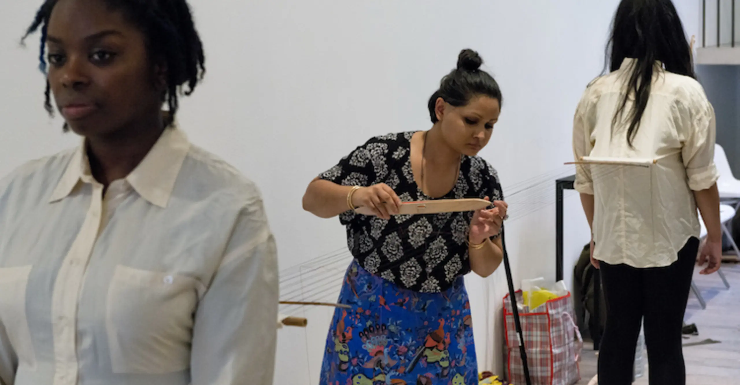Raisa Kabir lives and works in London, UK. Kabir is an interdisciplinary artist and weaver, who utilises woven text/textiles, sound, video and performance to translate and visualise concepts concerning the cultural politics of cloth, labour and embodied geographies. Kabir addresses cultural anxieties surrounding nationhood, textile identities and the cultivation of borders; as well as examining the encoded violence in histories of labour in globalised neo-colonial textile production.