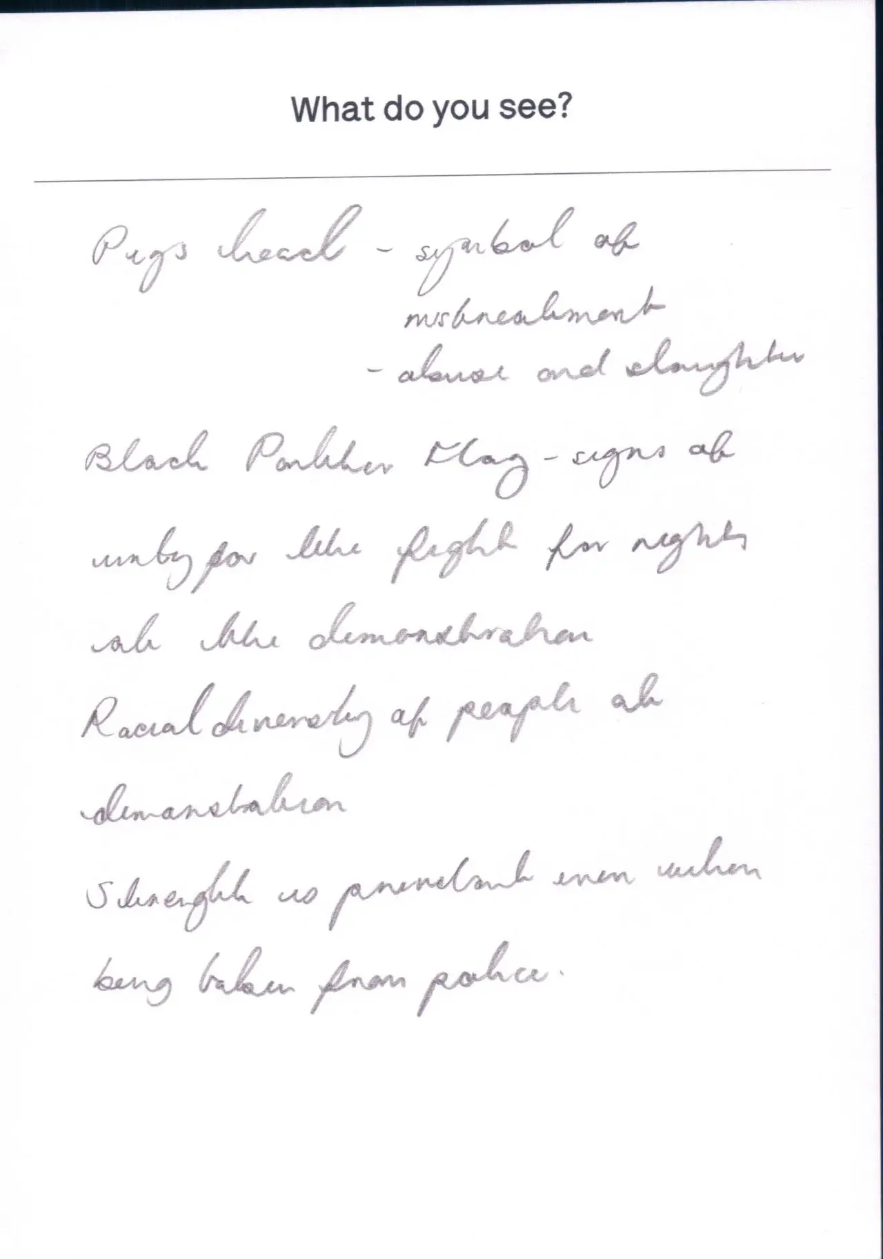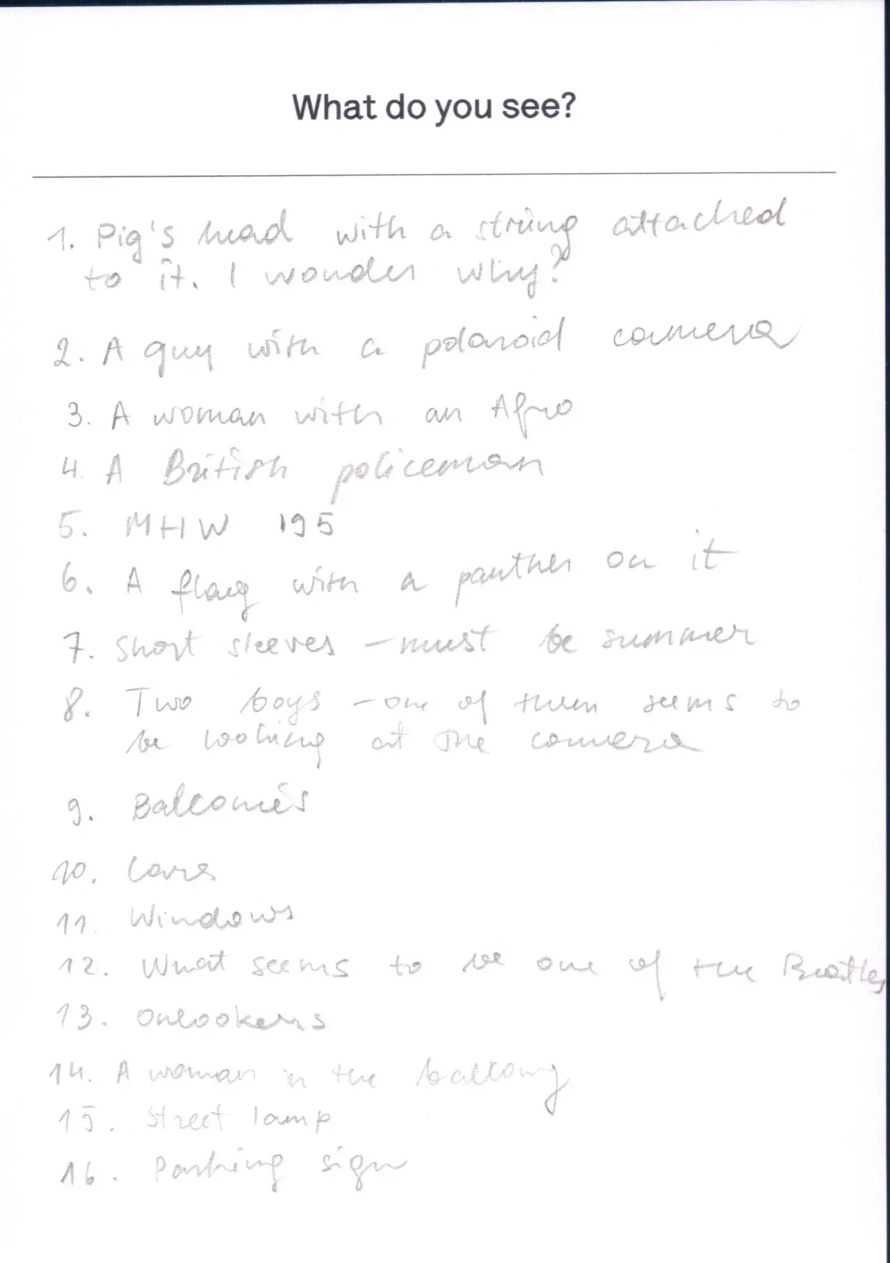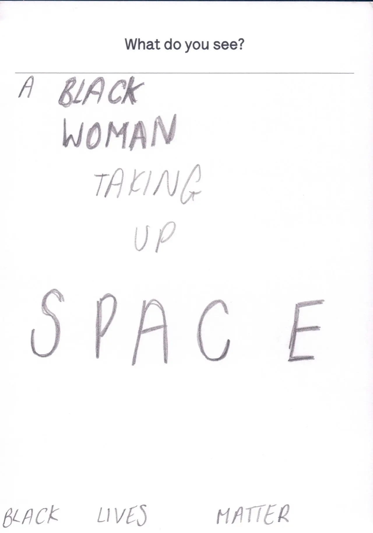 The photograph featured as part of the Touchstone programme (2012-2020). Each display consisted of a single photographic work on the Eranda studio floor where visitors were invited to respond to the question 'What do you see?' using the cards and pencils provided. A bench was placed in front of the work, encouraging people to spend a little longer than they might usually. The programme was part of a wider series of projects and activities related to visual literacy.