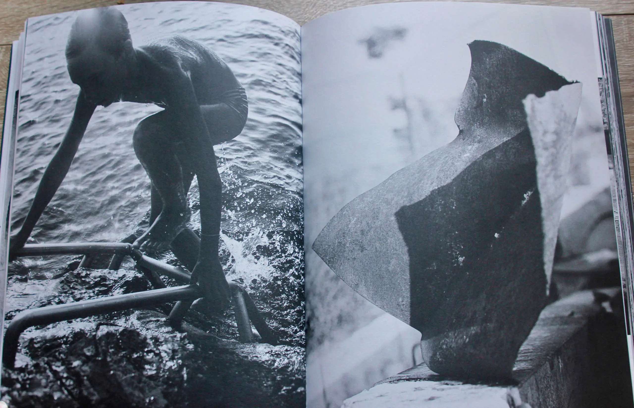 What interests me about this book is that at first, it may seem that there is not a clear narrative thread running through it, with the images organised seemingly at random. However, this is not the case. On closer inspection one notices motifs within. For example, the theme of water, specifically the surface, distorts all that enters its environment, therefore relating to the surreal nature of the book. Secondly, the motif of shape in which geometry reveals itself through the subject’s form and their surroundings as negative space. This illustrates the efforts of the conscious side to take control, searching for patterns within disorder.